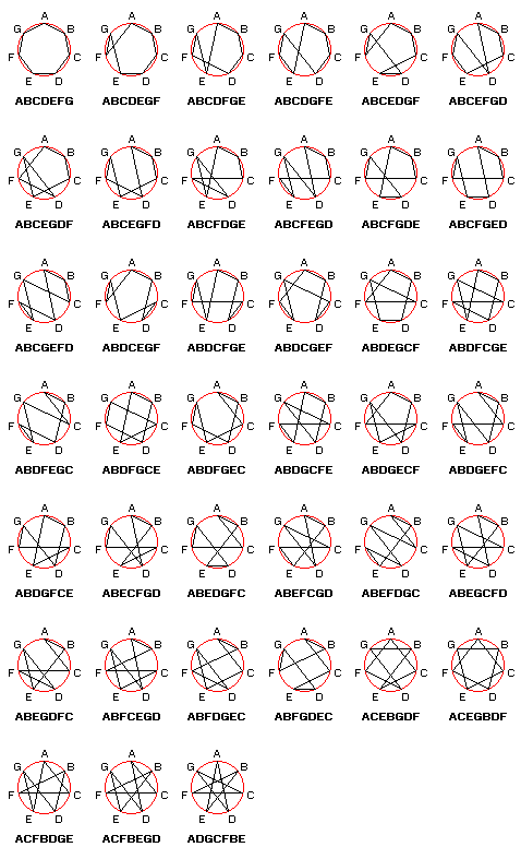Arrange N points evenly around a circle. Label them A,B,C... clockwise.